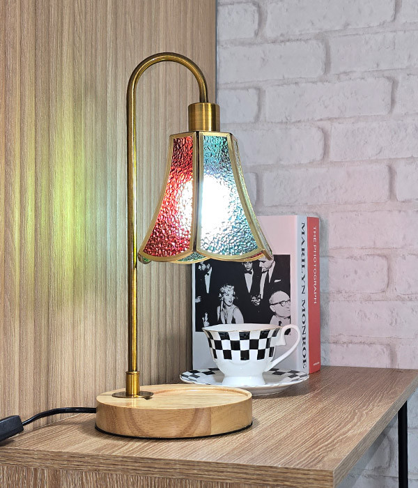 E14베이스 트랜디한 골드 & 우드 스테인드글라스